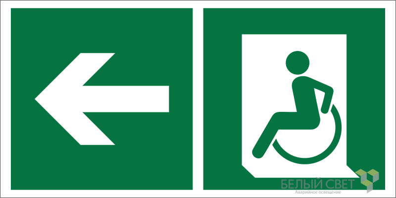 Знак безопасности BL-3517.E72"Напр. движения к эвакуац. выходу МГН налево" Белый свет a18618