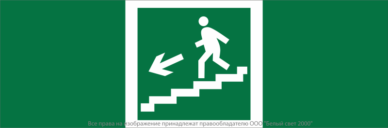 Знак безопасности NPU-3413.E14"Напр. к эвакуац. выходу по лестн. вниз (лев.)" Белый свет a16525