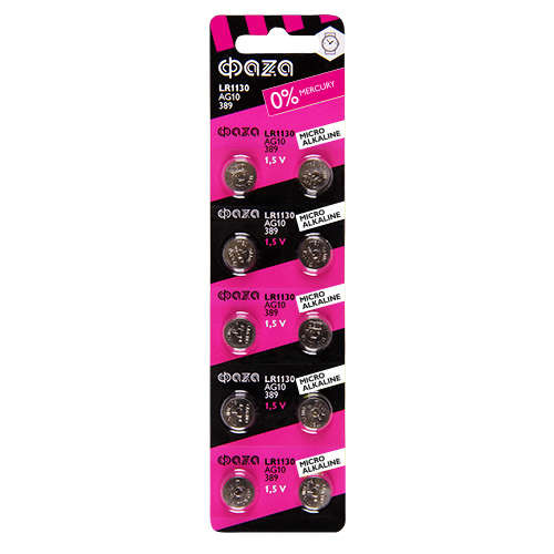 Элемент питания алкалиновый "таблетка" LR54/LR1130/AG10/G10 1.5В BL-10 (уп.10шт) ФАZА 5002739 ФАZА