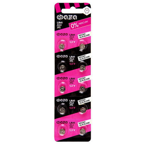 Элемент питания алкалиновый "таблетка" LR41/LR736/AG3/G3 1.5В BL-10 (уп.10шт) ФАZА 5002524 ФАZА