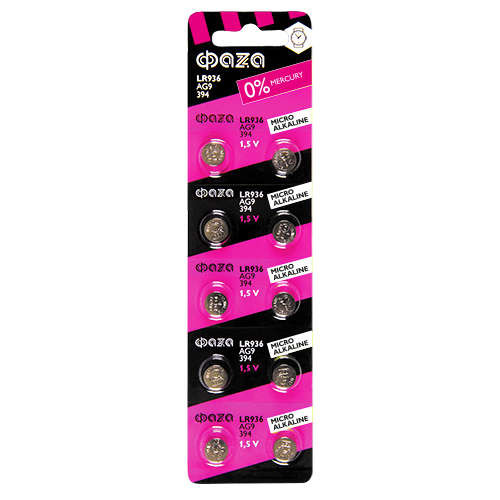 Элемент питания алкалиновый "таблетка" LR45/LR936/AG9/G9 1.5В BL-10 (уп.10шт) ФАZА 5002708 ФАZА