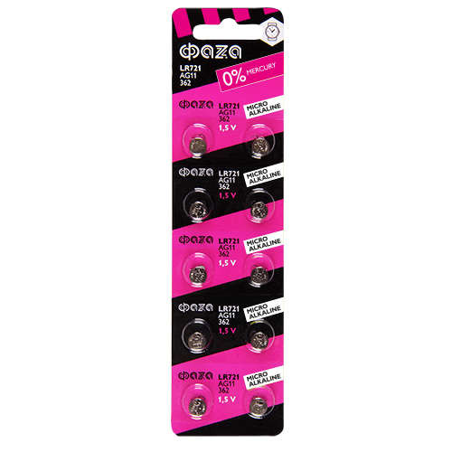 Элемент питания алкалиновый "таблетка" LR58/LR721/AG11/G11 1.5В BL-10 (уп.10шт) ФАZА 5002760 ФАZА