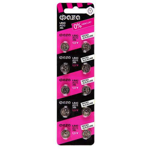Элемент питания алкалиновый "таблетка" LR43/LR1142/AG12/G12 1.5В BL-10 (уп.10шт) ФАZА 5002791 ФАZА