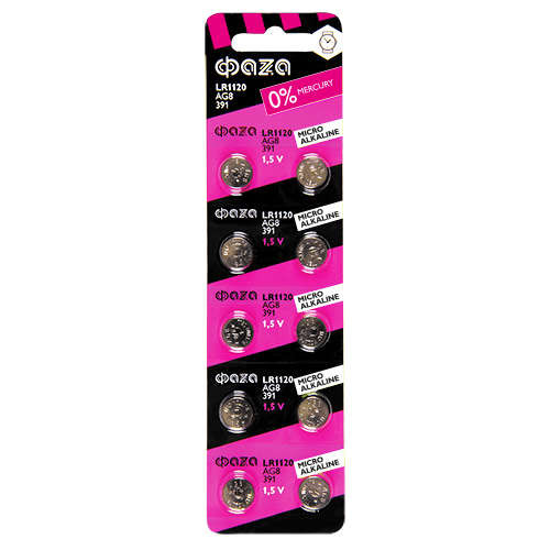 Элемент питания алкалиновый "таблетка" LR55/LR1120/AG8/G8 1.5В BL-10 (уп.10шт) ФАZА 5002678 ФАZА