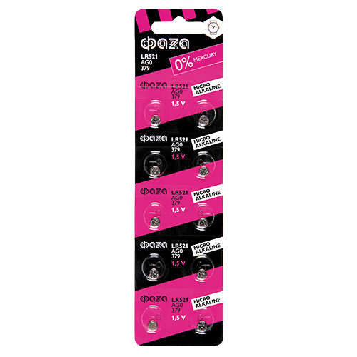 Элемент питания алкалиновый "таблетка" LR63/LR521/AG0/G0 1.5В BL-10 (уп.10шт) ФАZА 5002432 ФАZА