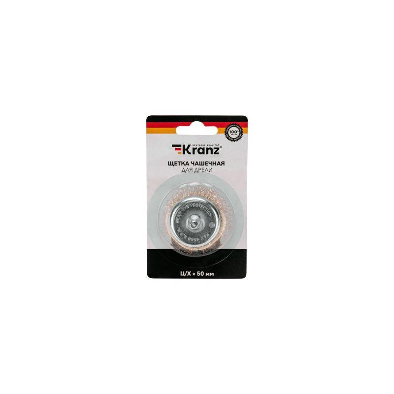 Щетка чашечная для дрели витая латунированная проволока 50мм Kranz KR-91-1253