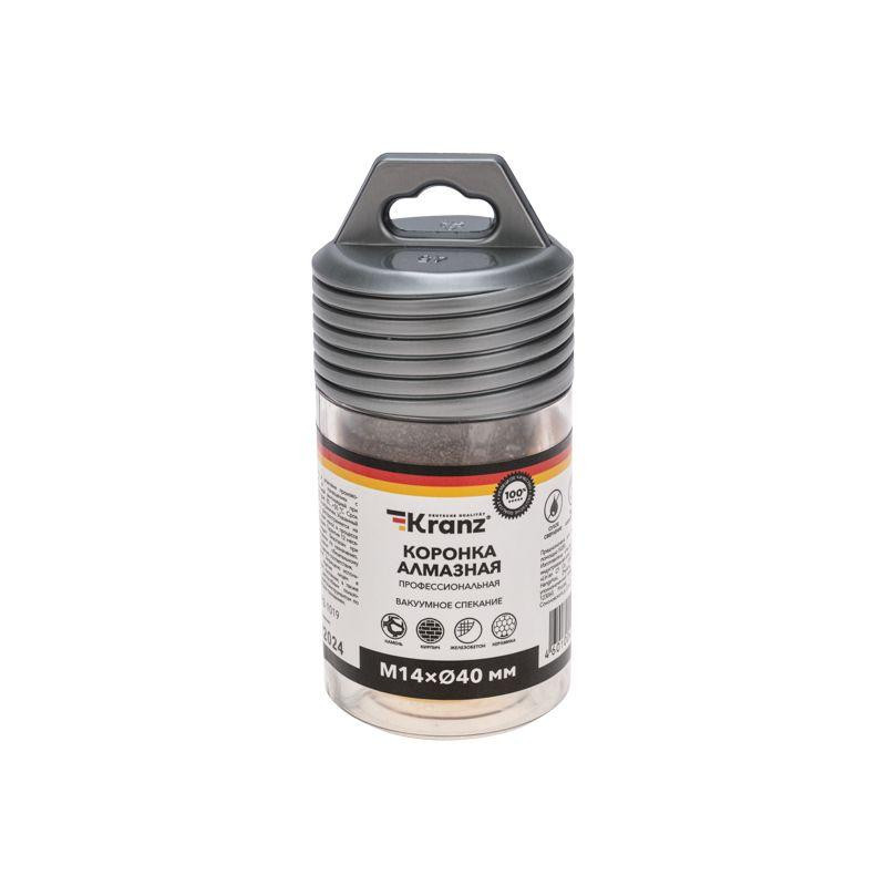 Коронка алмазная профессиональная по керамограниту и железобетону М14 вакуумное спекание 40мм для УШМ Kranz KR-92-1019