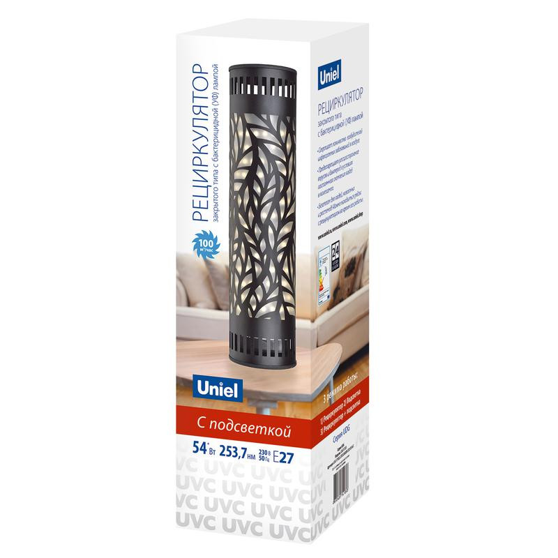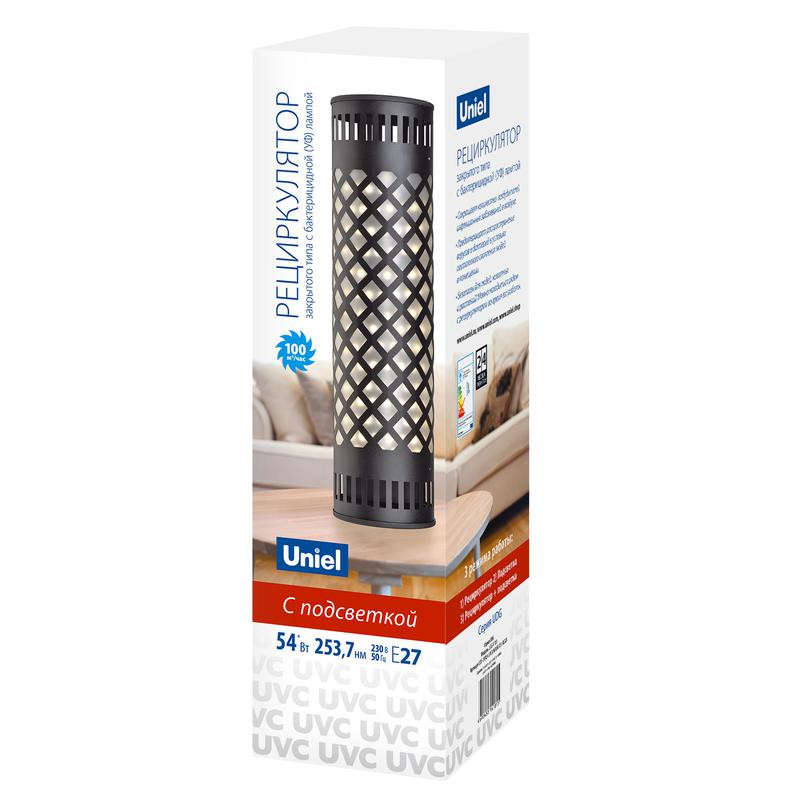 Рециркулятор настольный UDG-V100A UVCB/4000K D01 BLACK закрыт. типа с лампой E27 без озонирования 253.7нм черн. Uniel UL-00007821 Uniel