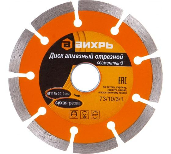 Диск отрезной алмазный сегментный 115х22.2мм сухая резка Вихрь 73/10/3/1 Вихрь