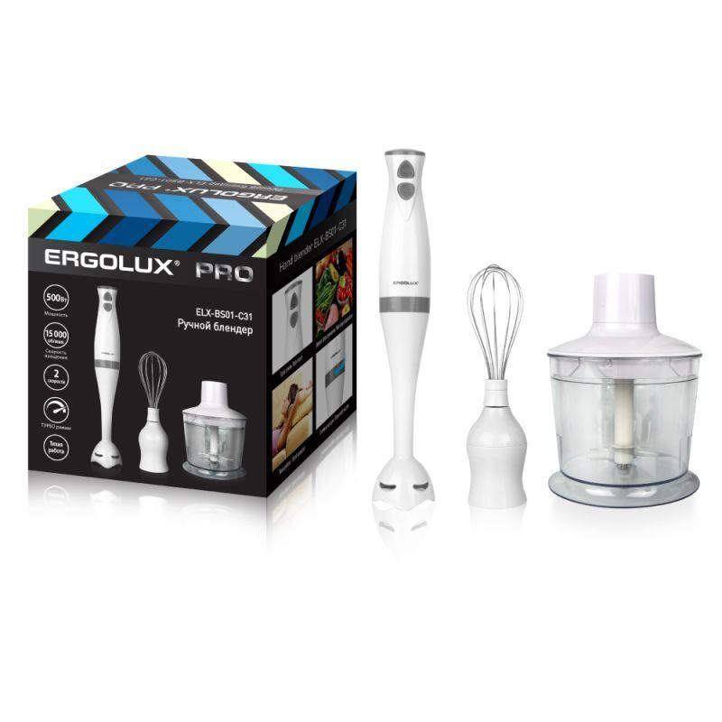Блендер ELX-BS01-C31 набор: измельчитель; венчик 500Вт 220-240В бел./сер. Ergolux 13440 Ergolux