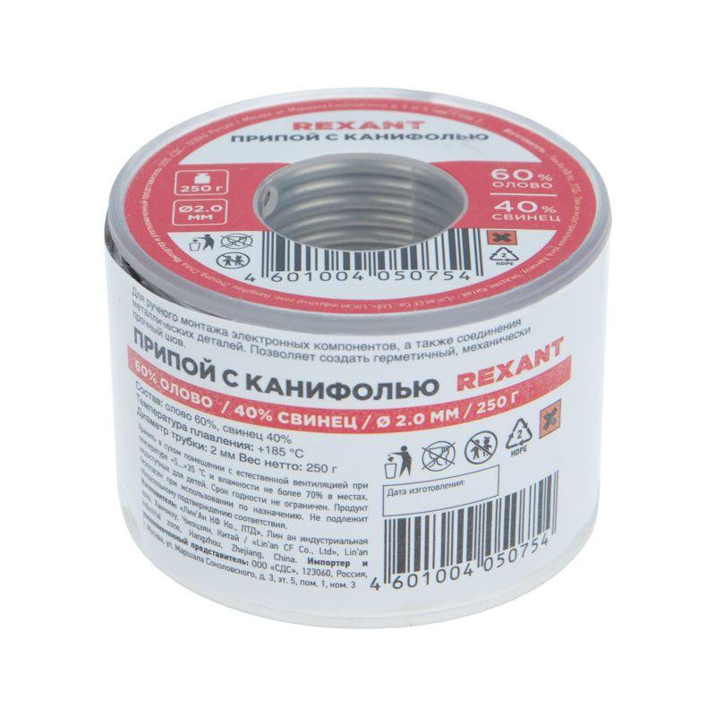 Припой с канифолью 250гр. d2.0мм (Sn60 Pb40 Flux 2.2%) REXANT 09-3323 Rexant