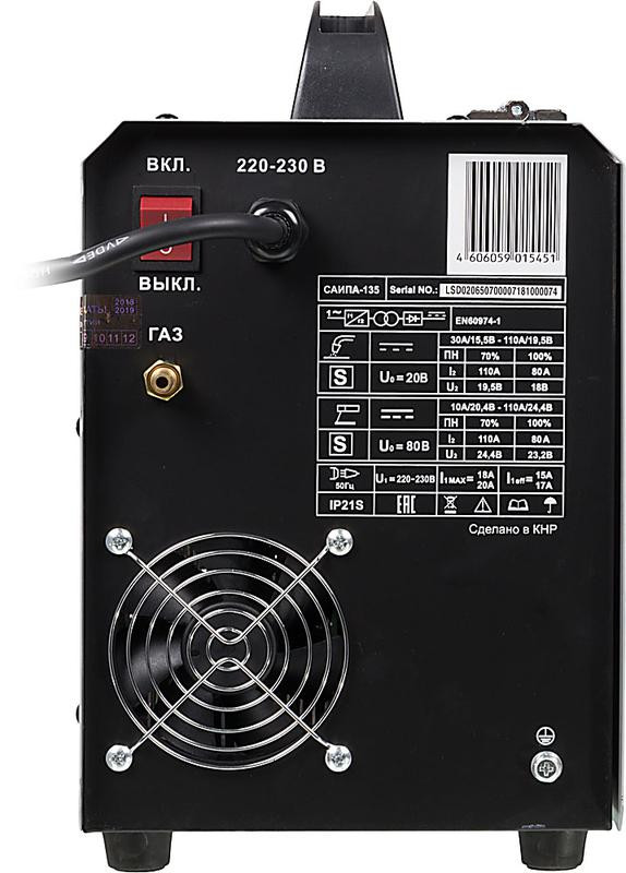 Инвертор сварочный полуавтомат. САИПА-135 110А d0.6-08мм сварочной провол.220В IP21 Ресанта 65/7 Ресанта