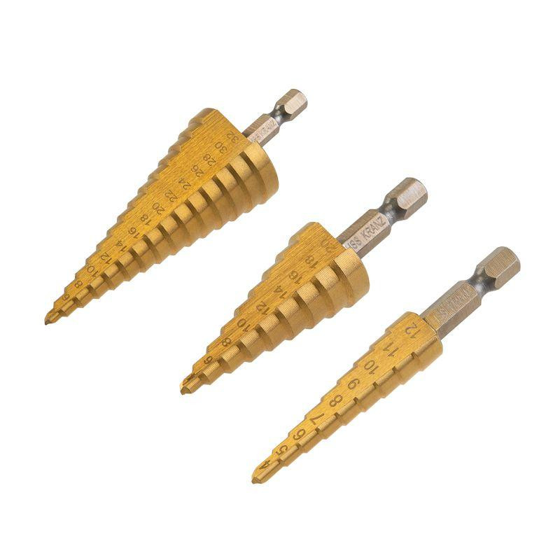 Набор ступенчатых сверл 4-12.4-20.4-32мм HSS-TiN ТИТАН (уп.3шт) Kranz KR-12-6620
