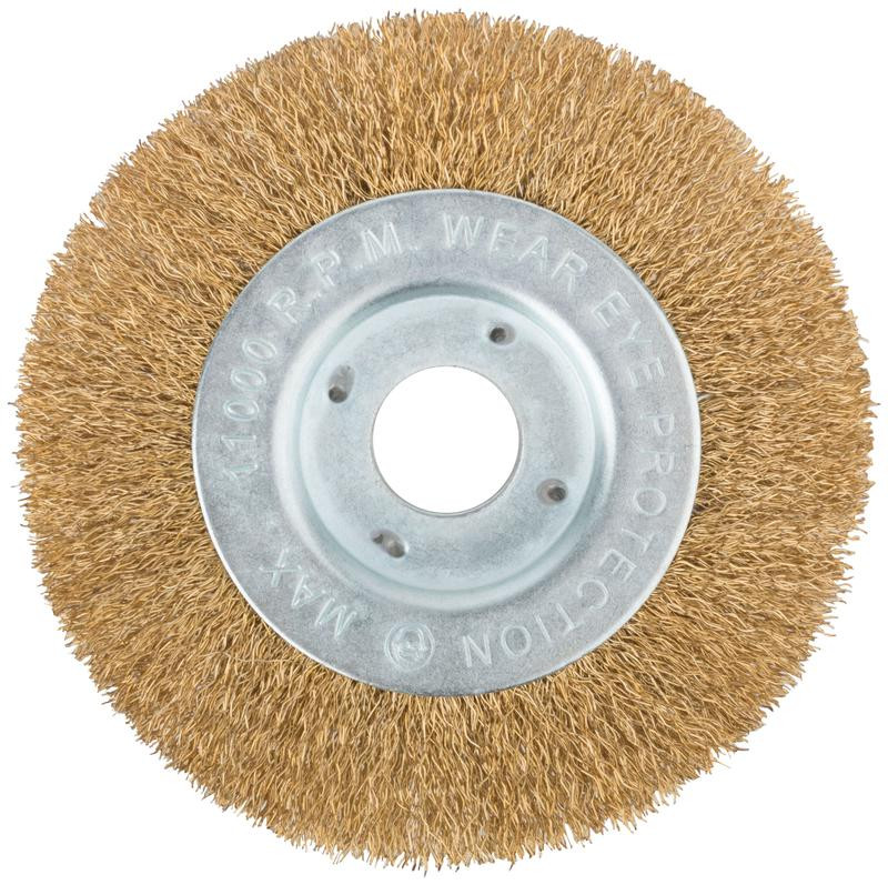 Корщетка-колесо посадочный d22.2мм стальная латунированная волнистая проволока 125мм FIT 39065