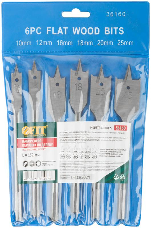 Набор сверл по дереву перовые 6шт (10-12-16-18-20-25мм) FIT 36160