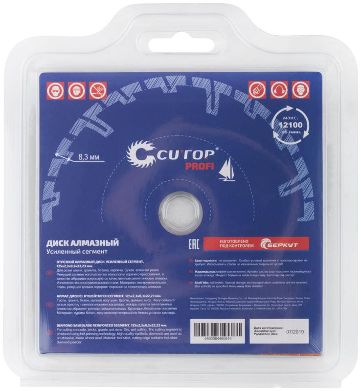 Диск отрезной алмазный сегментный усиленный турбо 125х2.3х8.3х22.2мм Cutop 66-12523