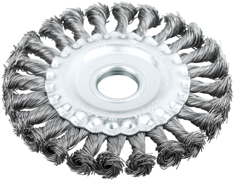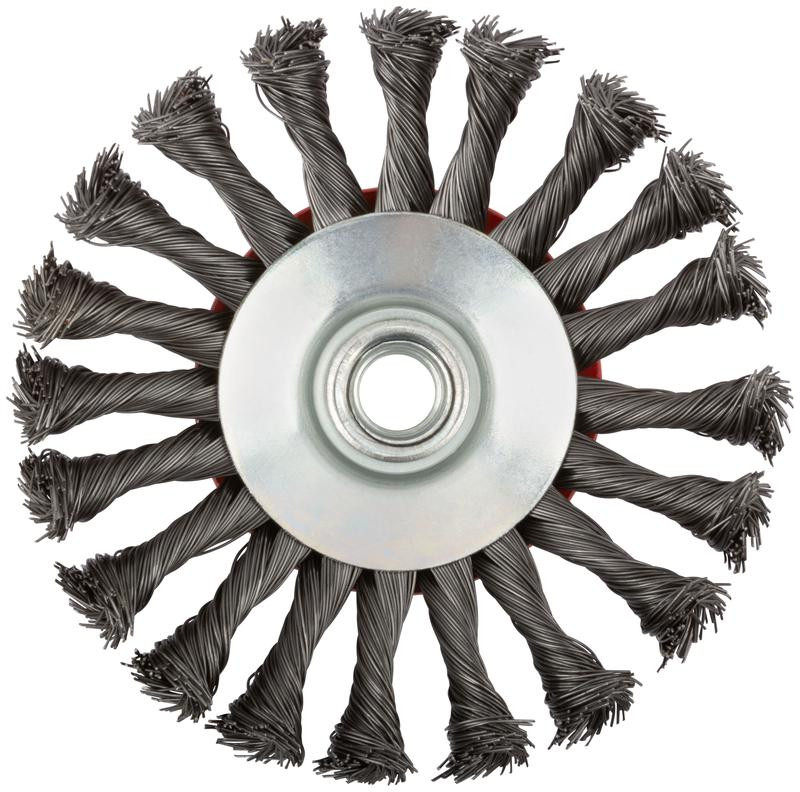 Корщетка-колесо с наклоном гайка М14 стальная витая проволока 100мм FIT 39114