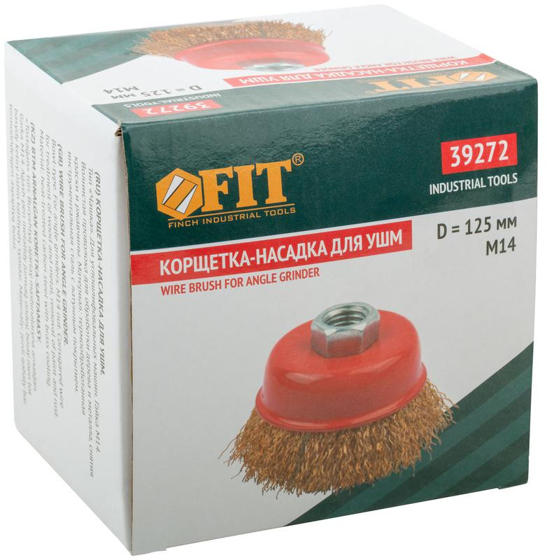 Корщетка-чашка гайка М14 стальная латунированная волнистая проволока 125мм FIT 39272