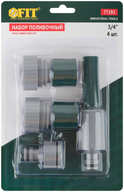 Набор поливочный 4шт 3/4дюйм ( насадка для полива; соединитель; соединитель с автостопом; адаптер внешний ) FIT 77292