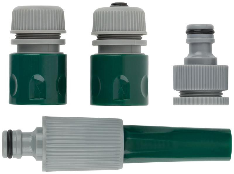 Набор поливочный 4шт 1/2дюйм ( насадка для полива; соединитель; соединитель с автостопом; адаптер внешний ) FIT 77291