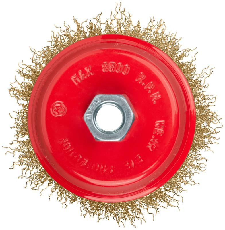 Корщетка-чашка гайка М14 стальная латунированная волнистая проволока 100мм FIT 39270