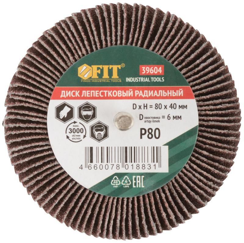 Диск лепестковый для дрели радиальный 80х40х6мм Р 80 FIT 39604