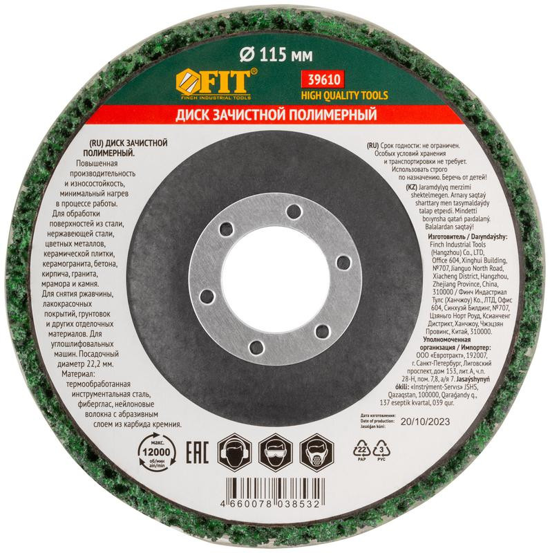 Диск зачистной полимерный посадочный d22.2мм 115мм зел. FIT 39610