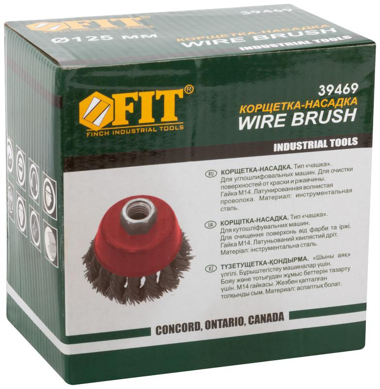 Корщетка-чашка гайка М14 стальная витая проволока 125мм FIT 39469