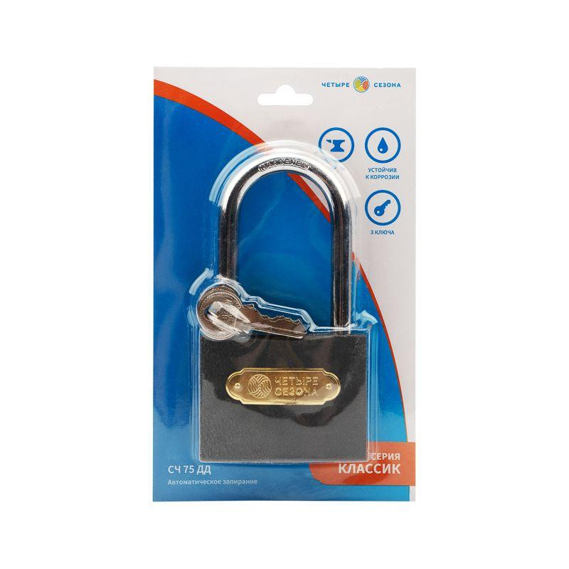 Замок навесной "Чугун" 75мм длин. дужка ЧЕТЫРЕ СЕЗОНА 79-0027