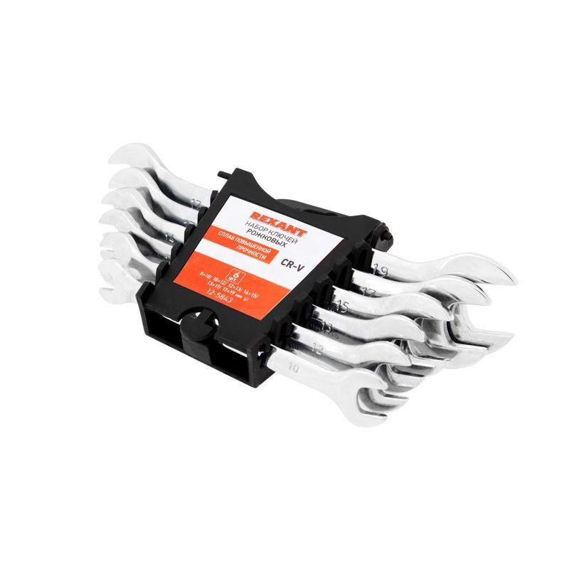 Набор ключей рожковых 8-19мм 6 предметов CrV зерк. хром. Rexant 12-5843 Rexant