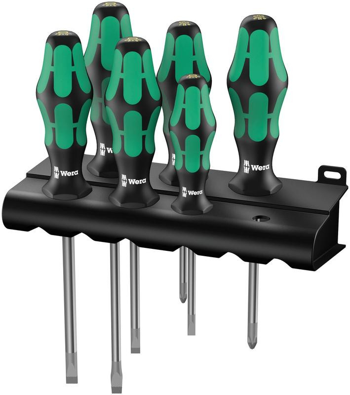 Набор отверток силовых с подставкой 6 предметов (PH 1х80/2х100 SL 0.6х3.5х80/0.8х4.5х90/1х5.5х100/1.2х7.0х125) Wera WE-018282