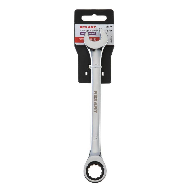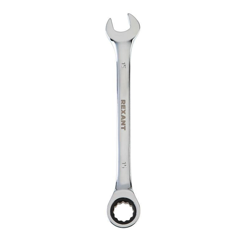 Ключ комбинированный трещоточный 15мм CrV зеркальный хром Rexant 12-5810-1 Rexant