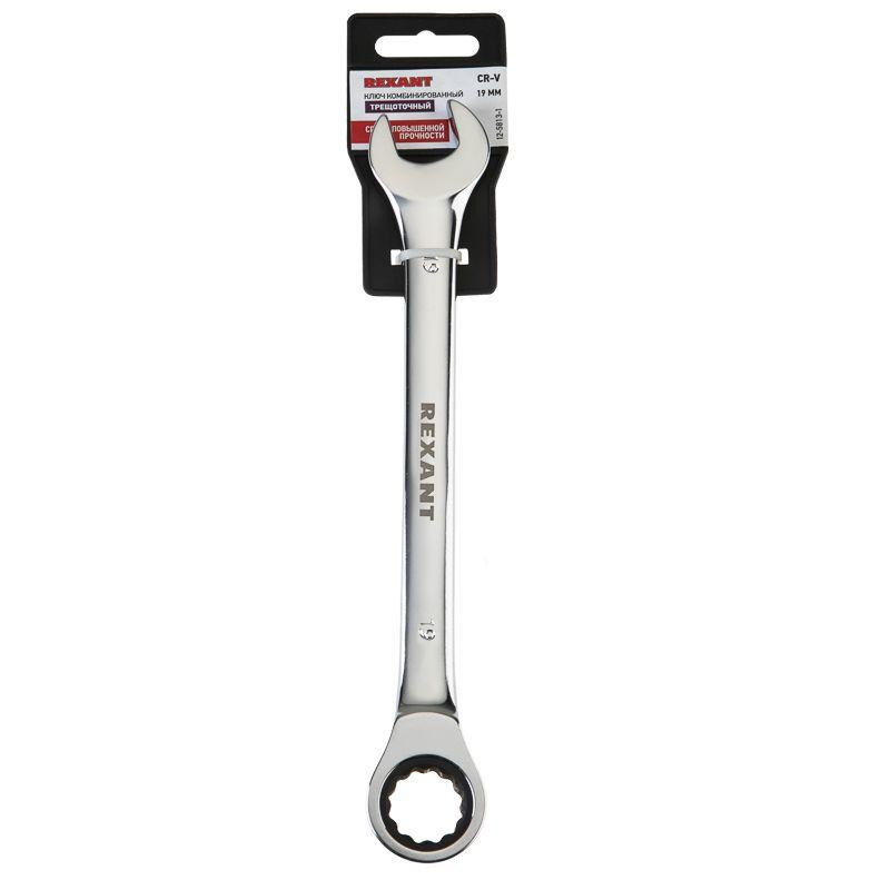 Ключ комбинированный трещоточный 19мм CrV зеркальный хром Rexant 12-5813-1 Rexant