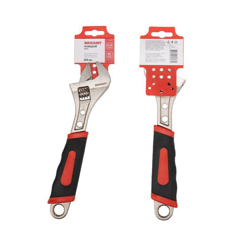 Ключ разводной 250мм двухкомпонентн. рукоятка никелир. Rexant 12-4674 Rexant