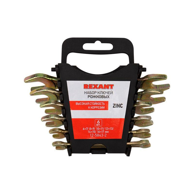 Набор ключей рожковых 6х7-16х17мм цинк желт. (уп.6шт) Rexant 12-5843-2 Rexant