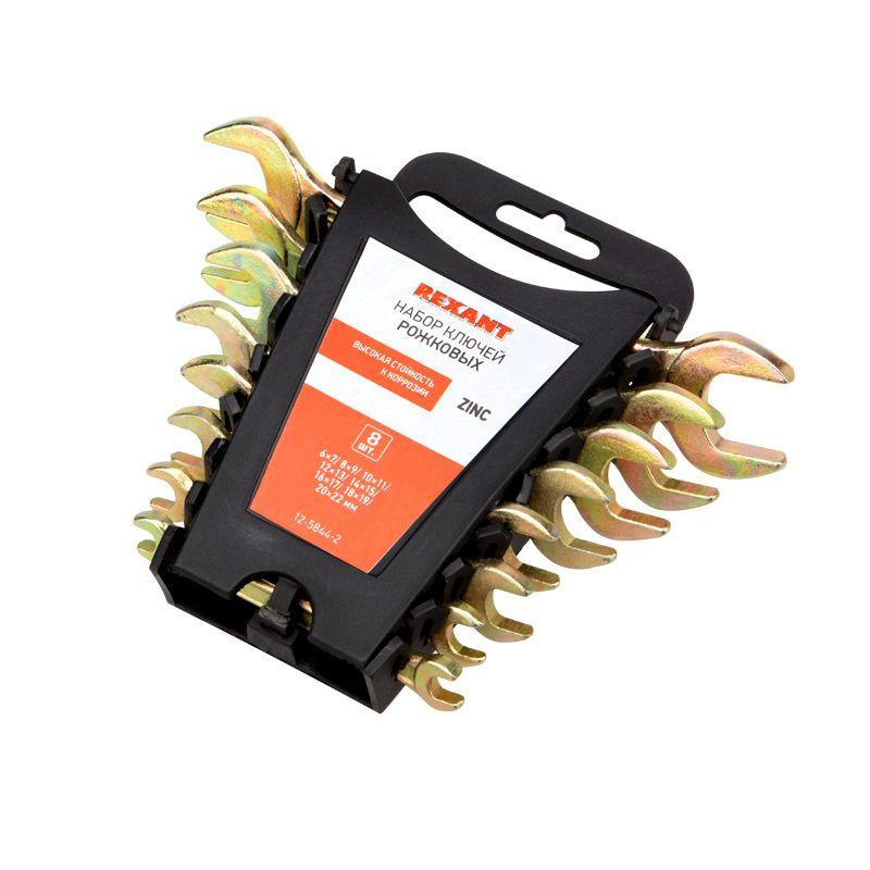 Набор ключей рожковых 6х7-20х22мм цинк желт. (уп.8шт) Rexant 12-5844-2 Rexant