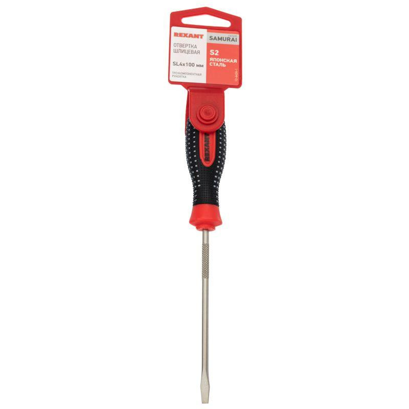 Отвертка шлицевая SL 4х100мм трехкомпонентн. рукоятка сталь S2 Rexant 12-6424-1 Rexant