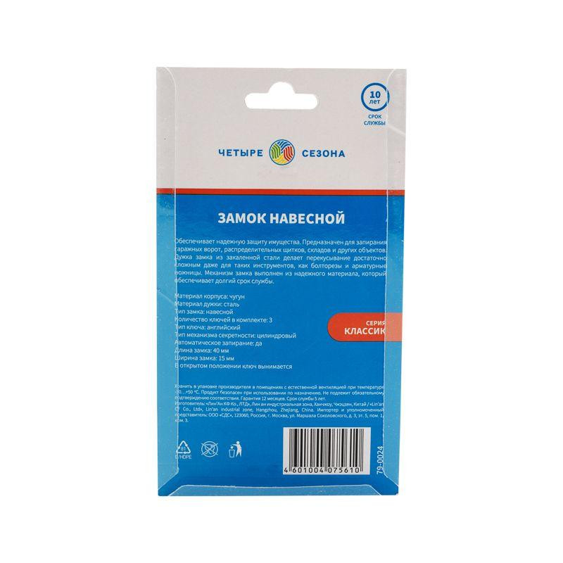 Замок навесной "Чугун" 40мм длин. дужка ЧЕТЫРЕ СЕЗОНА 79-0024