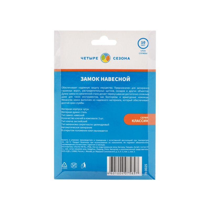 Замок навесной "Чугун" 50мм длин. дужка ЧЕТЫРЕ СЕЗОНА 79-0025