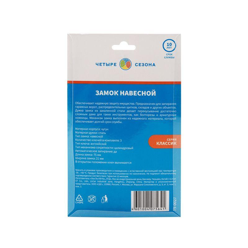 Замок навесной "Чугун" 75мм длин. дужка ЧЕТЫРЕ СЕЗОНА 79-0027