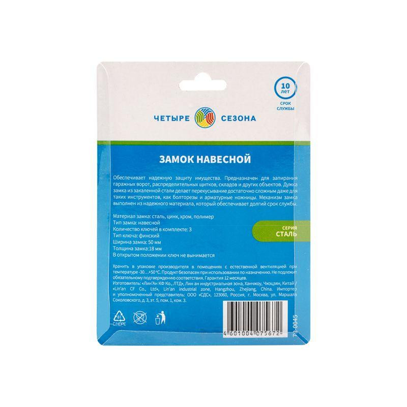 Замок навесной "Сталь" 50мм длин. дужка ЧЕТЫРЕ СЕЗОНА 79-0045