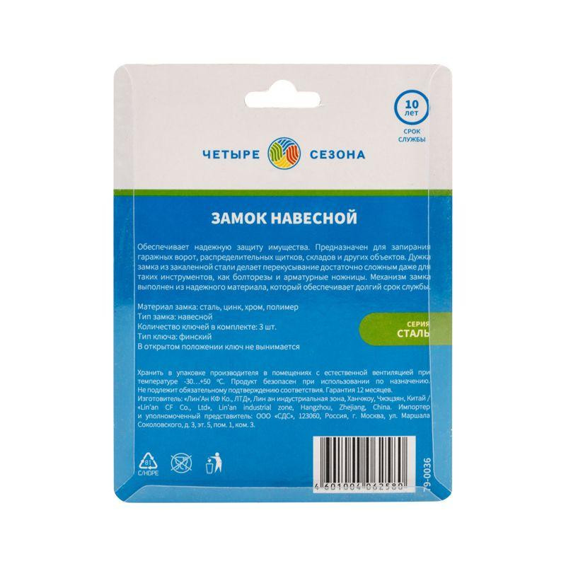 Замок навесной "Сталь" 60мм ЧЕТЫРЕ СЕЗОНА 79-0036