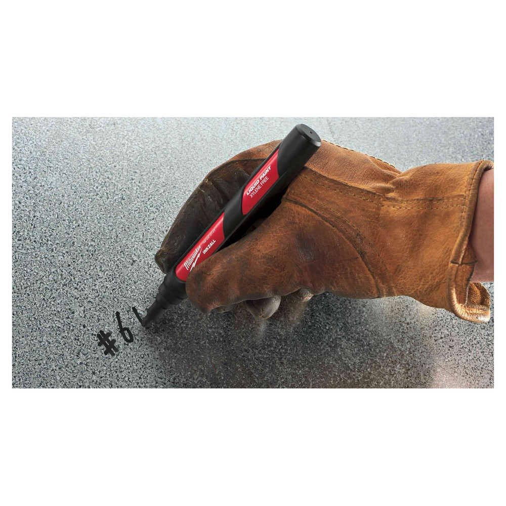 Черный маркер Milwaukee Black-LP 48223731 используется для нанесения на различные поверхности. Это может быть бетон, алюминий, пластик или сталь. Краска высыхает за 10 секунд. Инструмент имеет прочный металлический корпус. В состав не входит ксилол. Рабочая температур от -10 до +145 градусов.