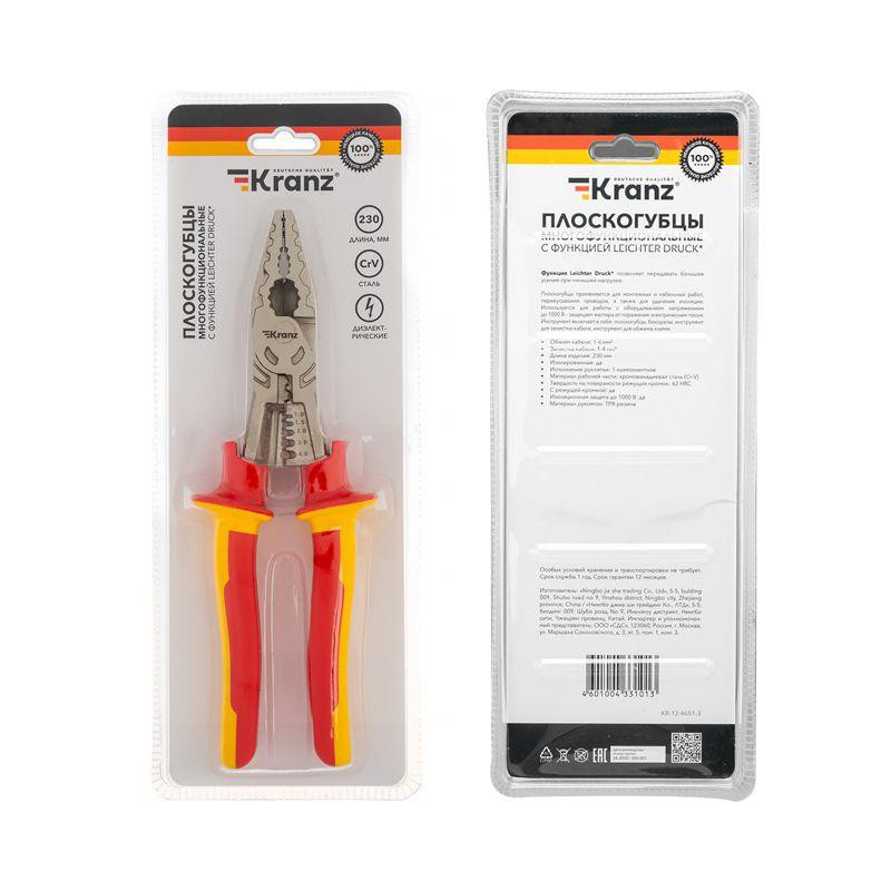 Плоскогубцы многофункциональные диэлектрические 230мм Kranz KR-12-4651-3