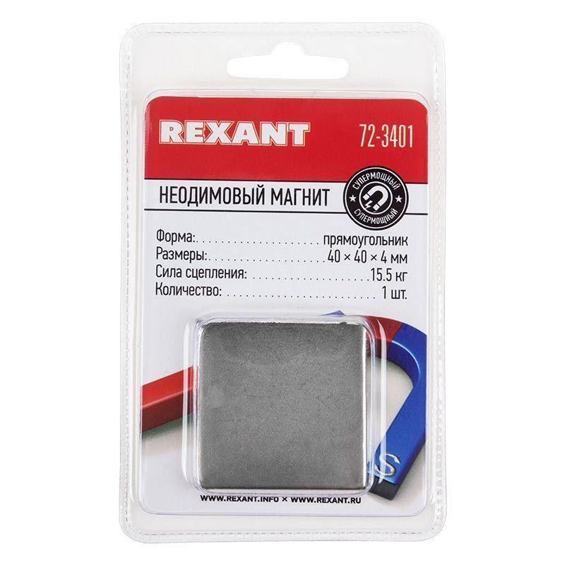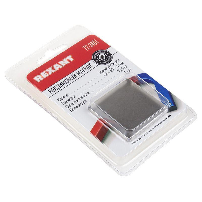 Магнит неодимовый прямоугольник 40х40х4мм сцепление 15.5кг (блист.) Rexant 72-3401 Rexant