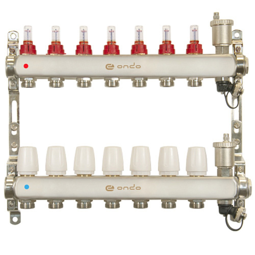Группа коллекторная ONDO нерж сталь 7 вых. с автомат. воздухоотвод., расход. и термостат. клапанами ONDO