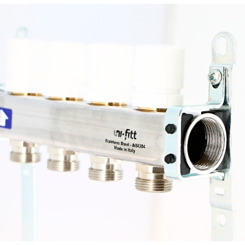Коллектор Uni-Fitt НВ 1"х4 вых 3/4" ЕК 40 мм с вентилями, никелированный