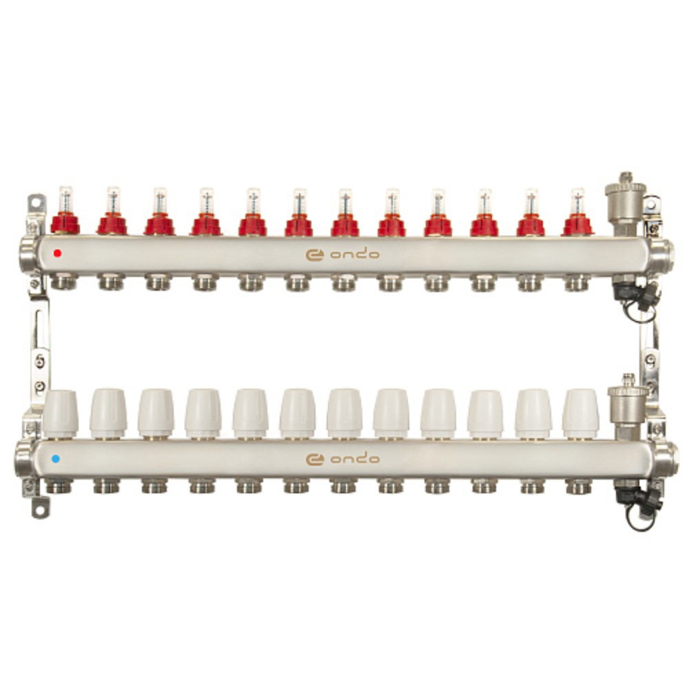 Группа коллекторная ONDO нерж сталь 12 вых. с автомат. воздухоотвод., расход. и термостат. клапанами ONDO