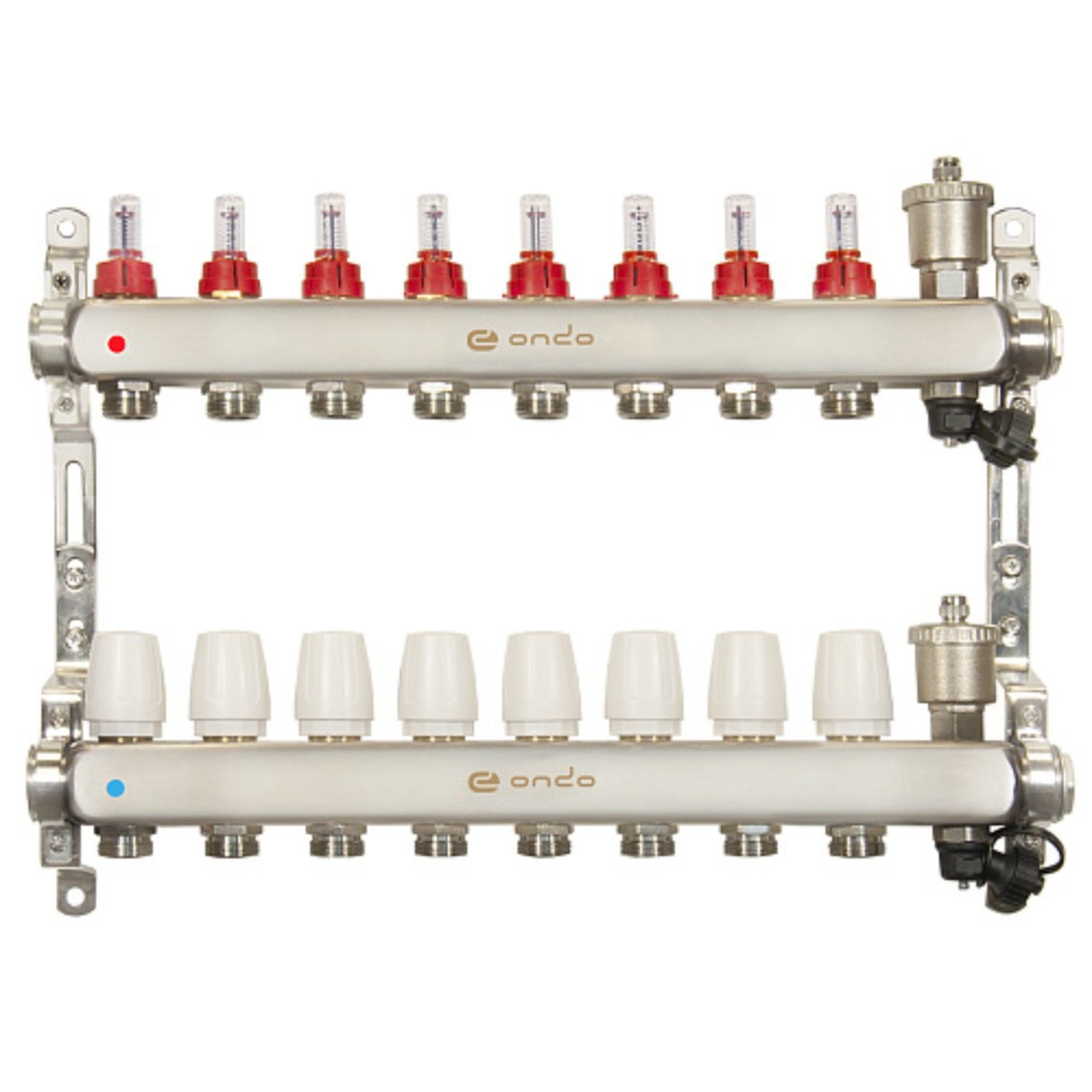 Группа коллекторная ONDO нерж сталь 9 вых. с автомат. воздухоотвод., расход. и термостат. клапанами ONDO