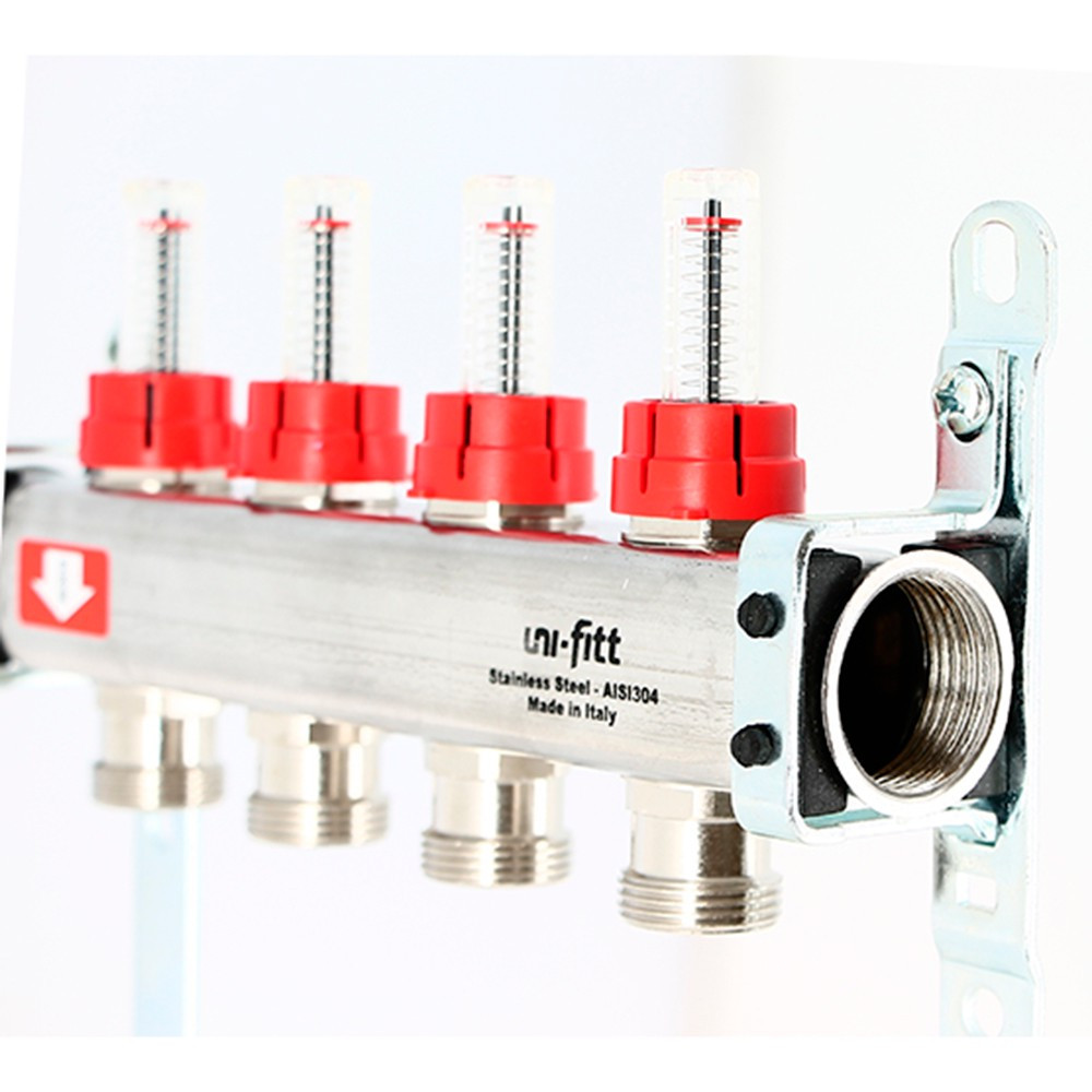 Группа коллекторная Uni-Fitt 1"х11 вых 3/4" с расходомерами и термостат. вентилями, нерж. сталь